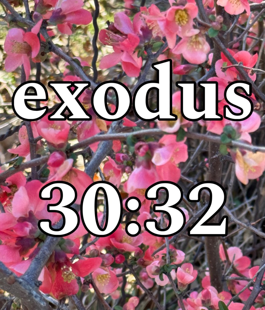 Exodus chapter thirty verse thirty two, “It is holy, and it must be holy to you.” I’ve always struggled with treating what God commands as holy, truly holy. God is giving Moses instruction on how to build the tabernacle and everything that goes inside including garments for the priests. So much detail went into the building of the tabernacle, what stood out was God commanding Moses of the obedience to holiness. Everything used was holy. When something is holy to God it must be holy to us. This verse got me thinking about how I treat the things God calls sacred and holy. Do I treat them well? Do I treat those things with caution and care? Are they treated with love?